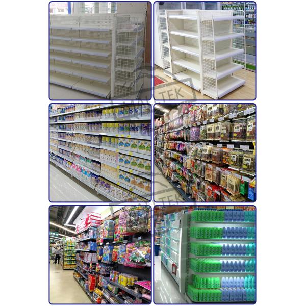 Elegant appearance , sturdy structure , various dimensions , stylish and fashionable design; Can be combined by single sided and double sided shelves and half-round gondolas ; Distance between veneers can be randomly modified; Surface treatment is epoxy electrostatic spray finish; A wide range of colours for selection; Strongly anti corrosion, rust resistance with easy assembling and dismantling; With good flexible performance ,which fits in composite supermarkets.Your best choice ever!